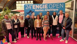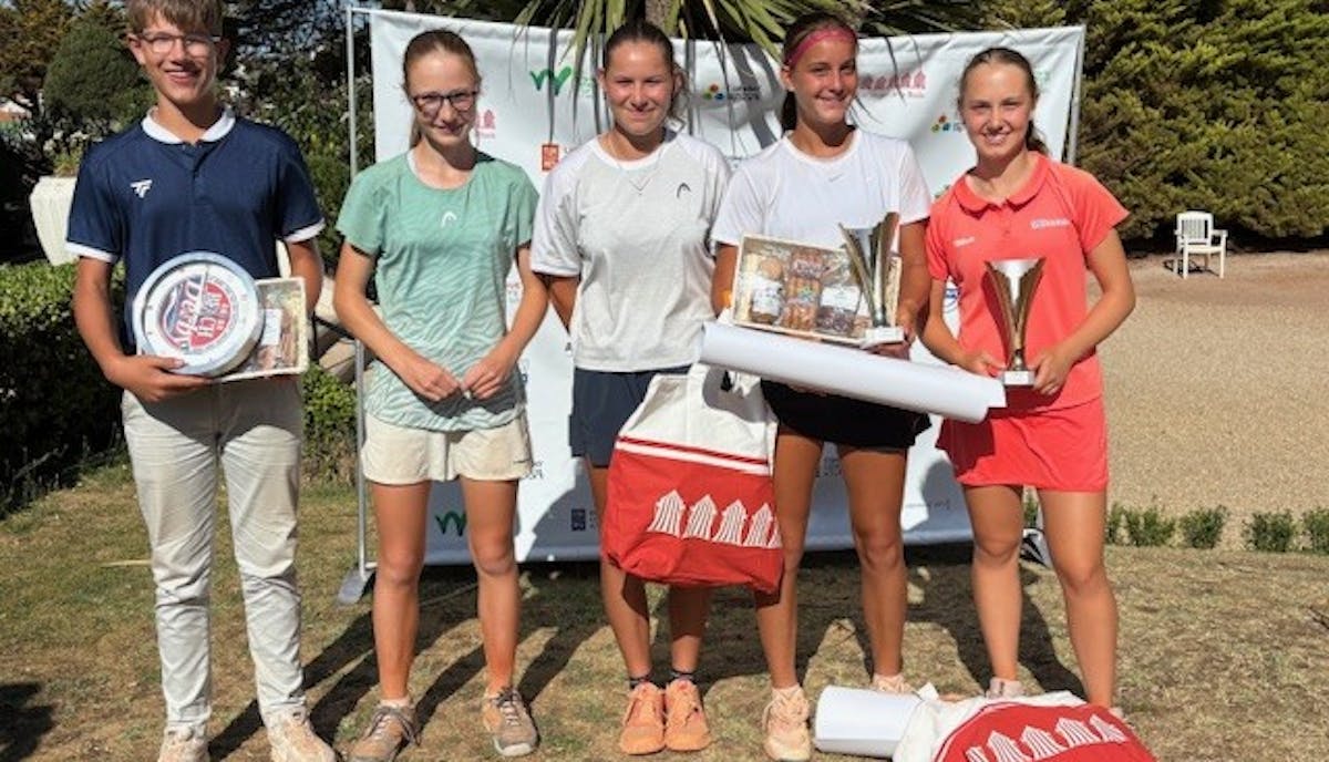 De gauche à droite : Daniel Laurent, Directeur du tournoi - Gabriel Jalouneix - Zaccharie Cado - Jerome Pécresse, Président Country Club Barrière - Isabelle Bouvier, Directeur Général Resort La Baule